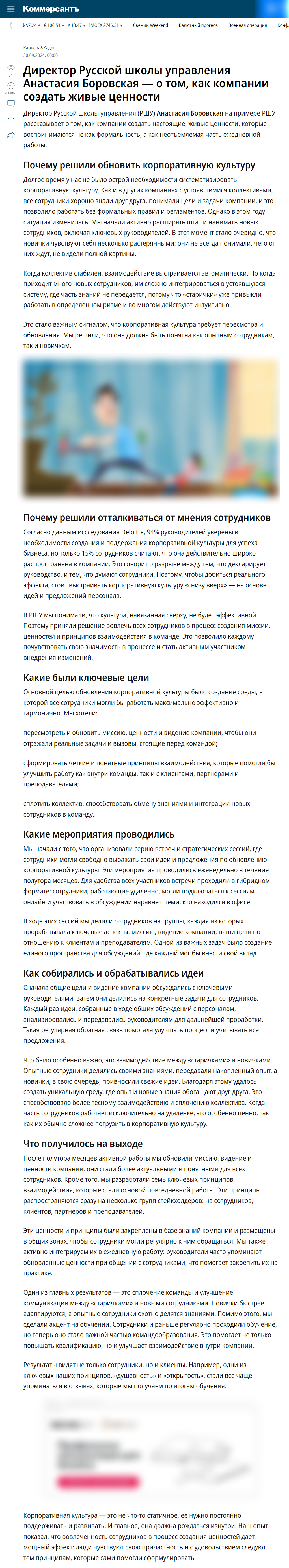 О бизнес-школе «Русская Школа Управления»: опыт, практика, признание
