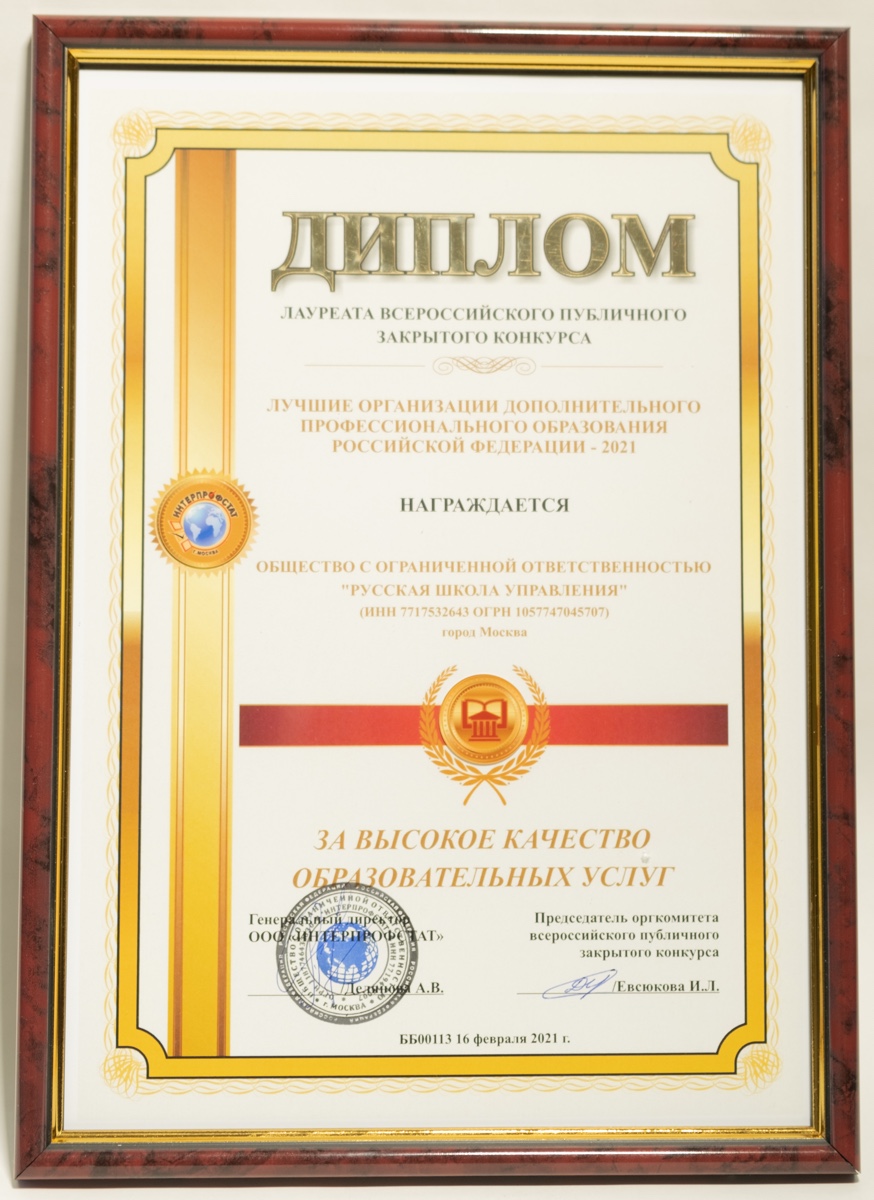 Русская Школа Управления входит в ТОП-5 лучших бизнес-школ России, отмечена премиями «Эффективное образование», «Я знаю: EdTech», входит в лидеры народных и экспертных рейтингов MBA порталов, признана «Лидером отрасли». C 2021 по 2025 год РШУ регулярно получает награды как лучшая бизнес-школа и лучший провайдер образовательных услуг для бизнеса.
