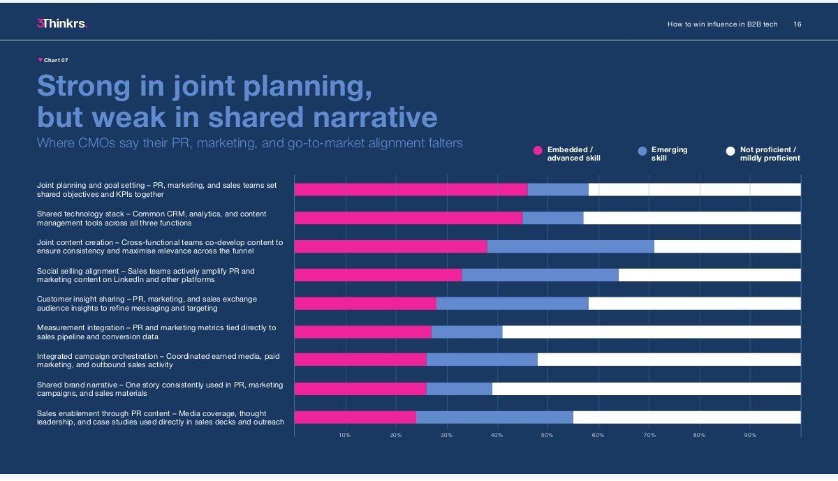 • Добиться внутреннего выравнивания (GTM alignment): только 38% компаний хорошо налаживают совместное создание контента между отделами.